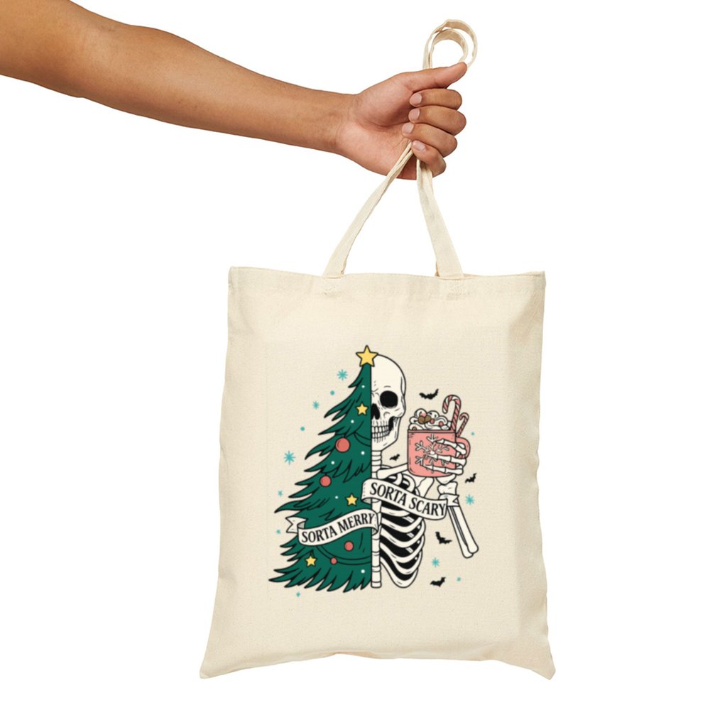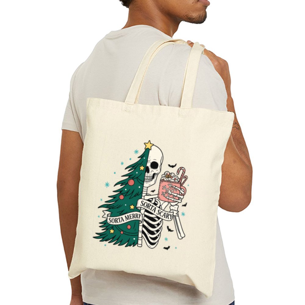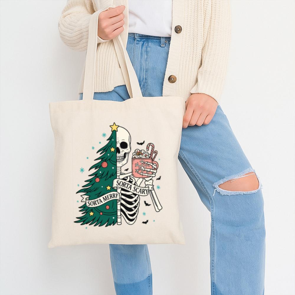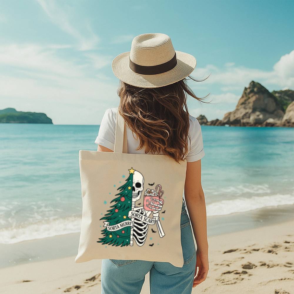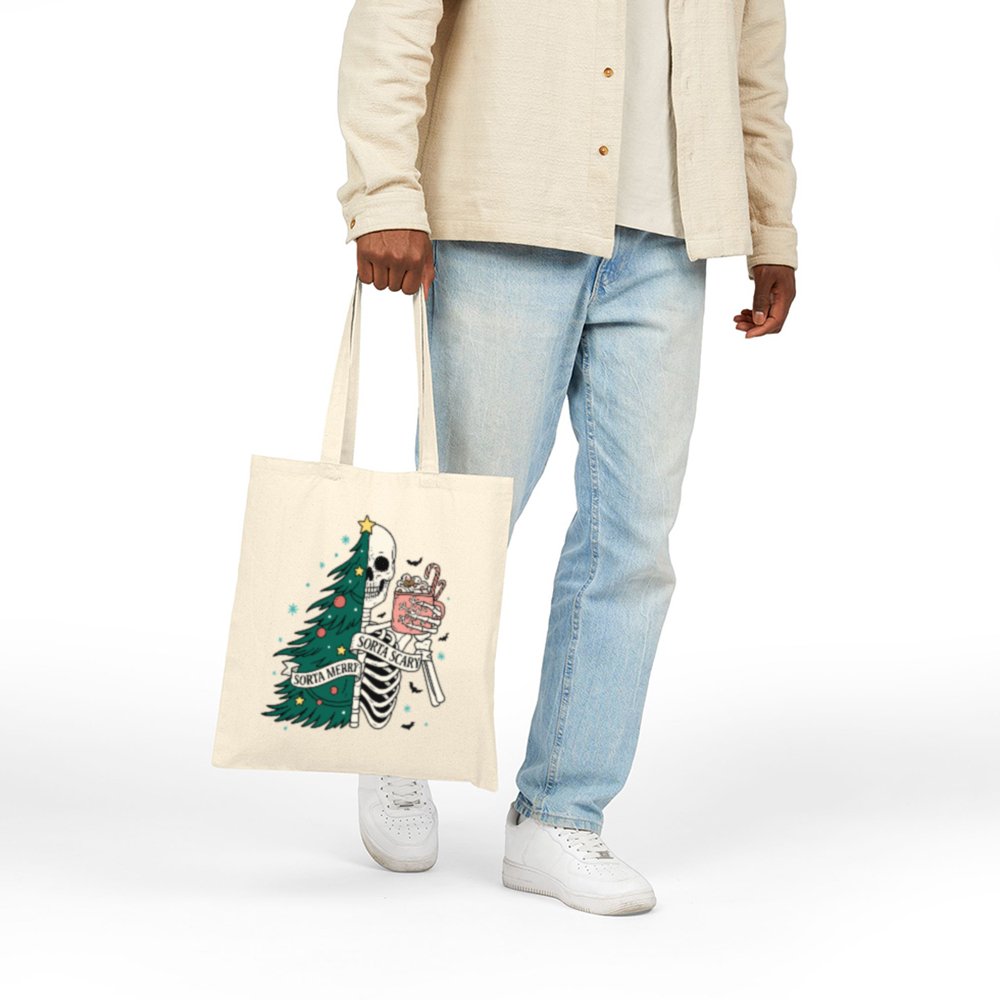 Carry a little creepy with your Christmas in the Sorta Merry Sorta Scary Tote Bag. With a bold, festive-meets-ghoulish print, this bag blends Halloween charm with holiday cheer. Whether you’re out grabbing gifts or groceries, it’ll turn heads and start conversations.