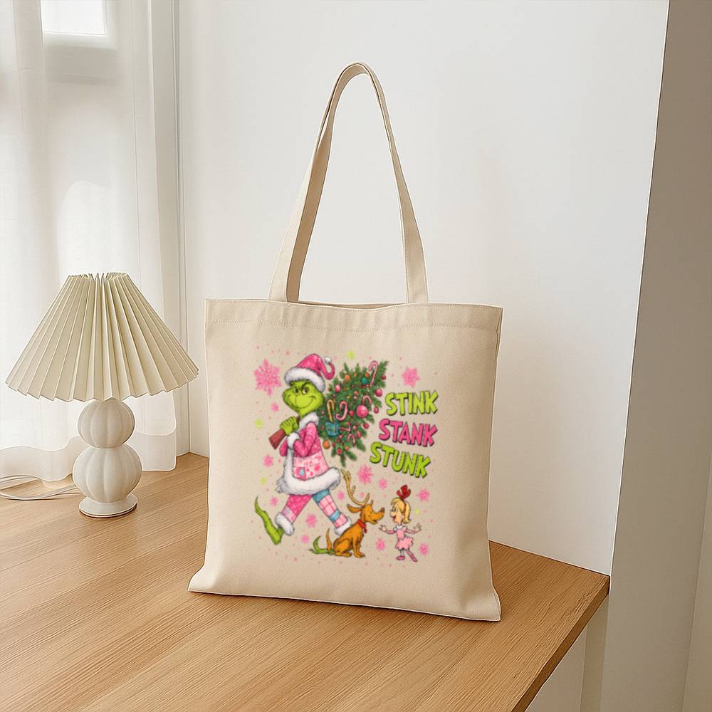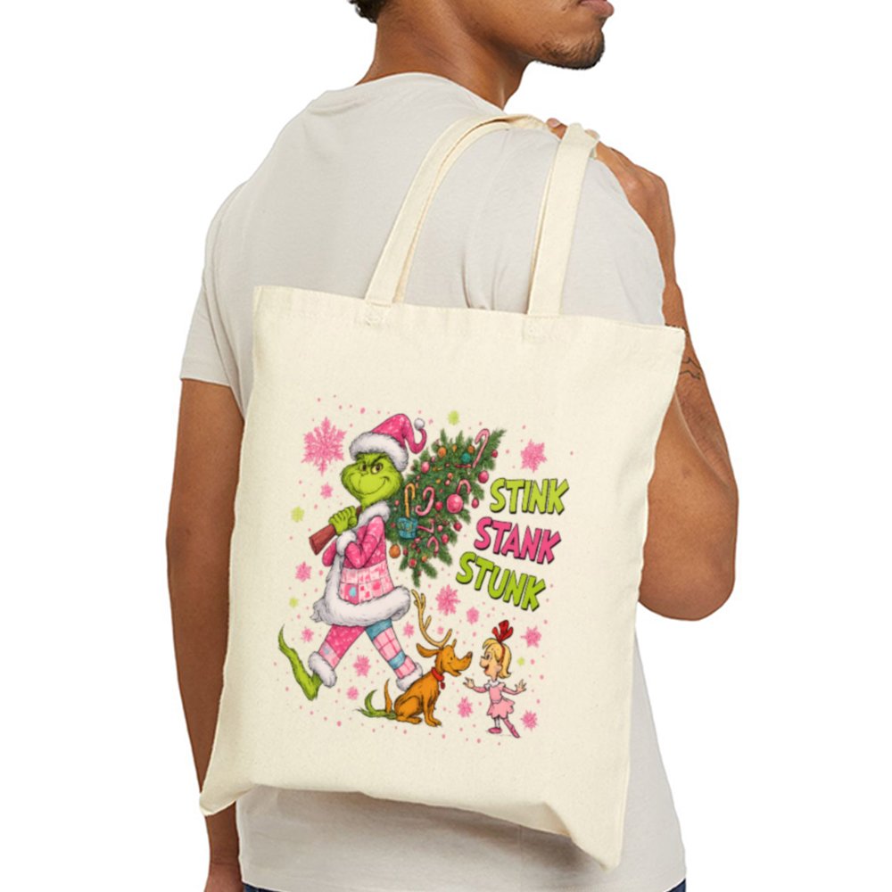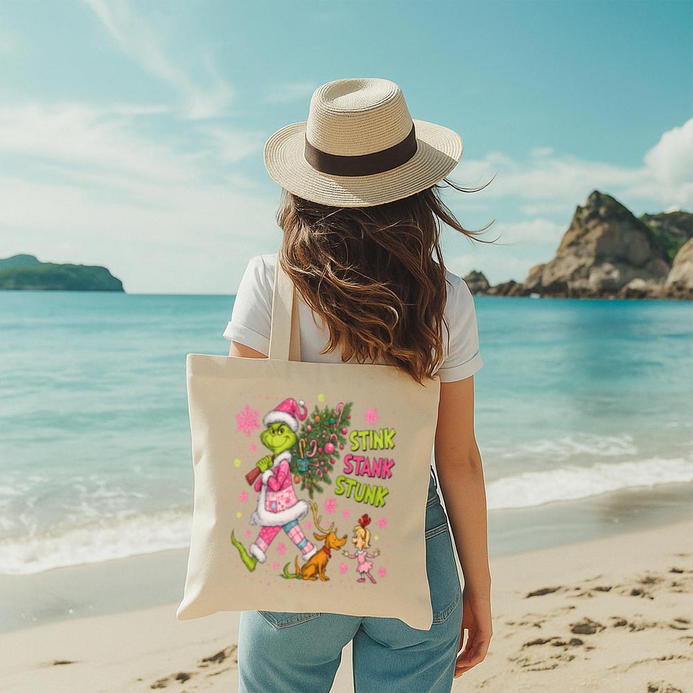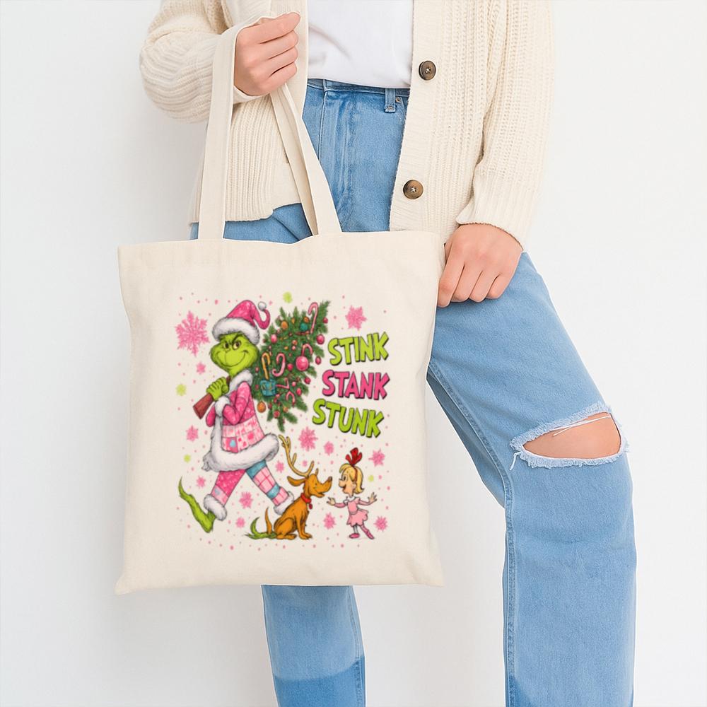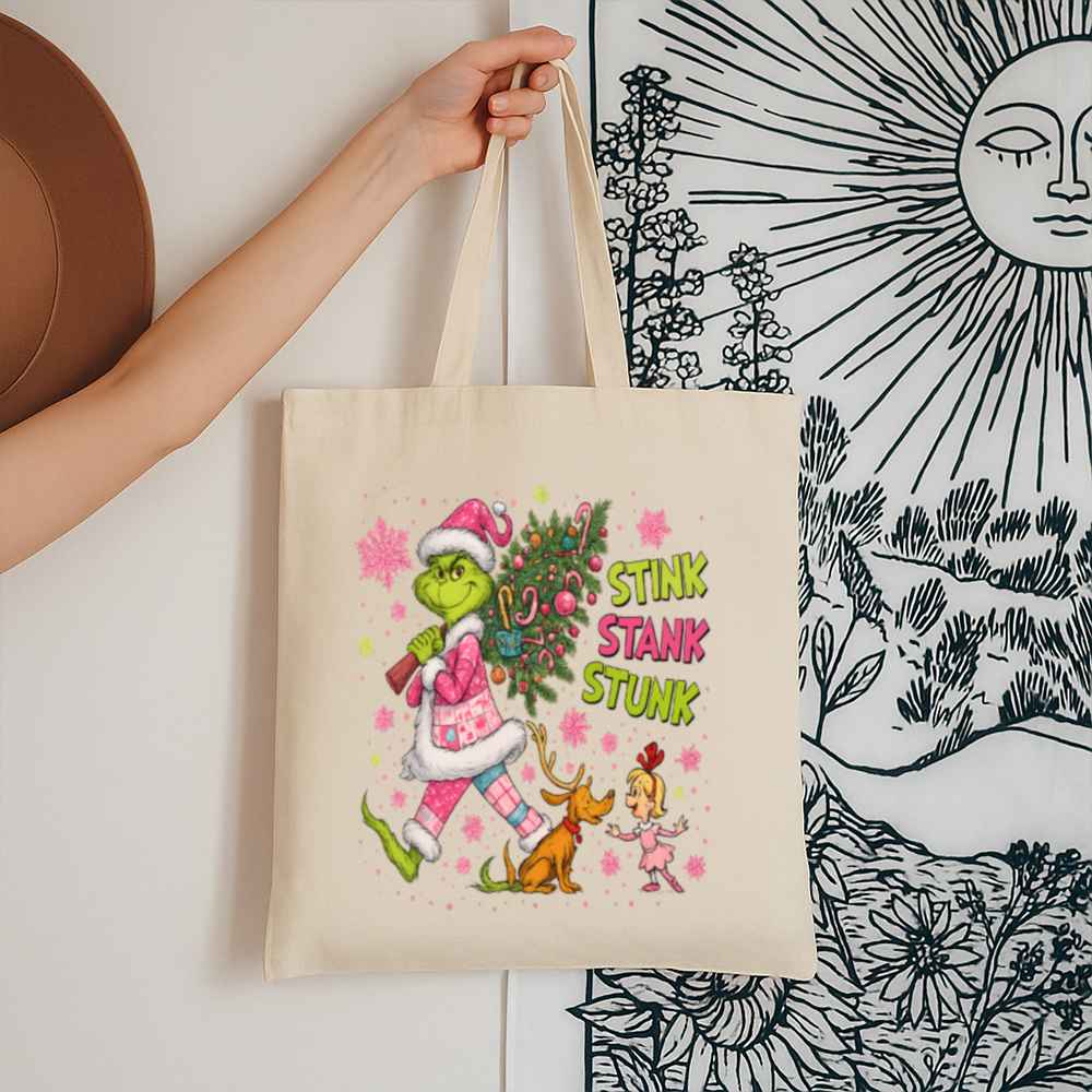 The Stink Stank Stunk Tote Bag delivers both function and festive snark. With its bright, cheeky design featuring a green Christmas grump, a decked-out tree, and sassy quote, this tote is the perfect match for sarcastic holiday shoppers and eco-conscious grinches alike.