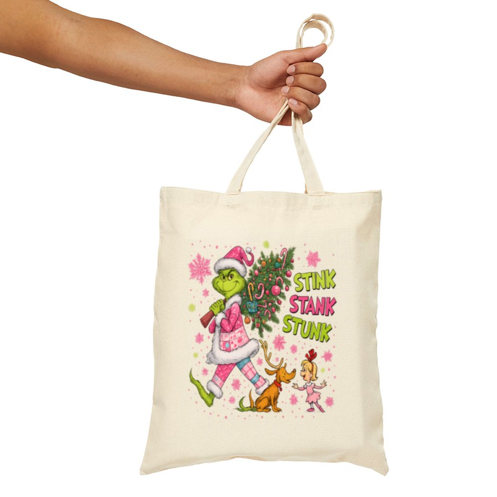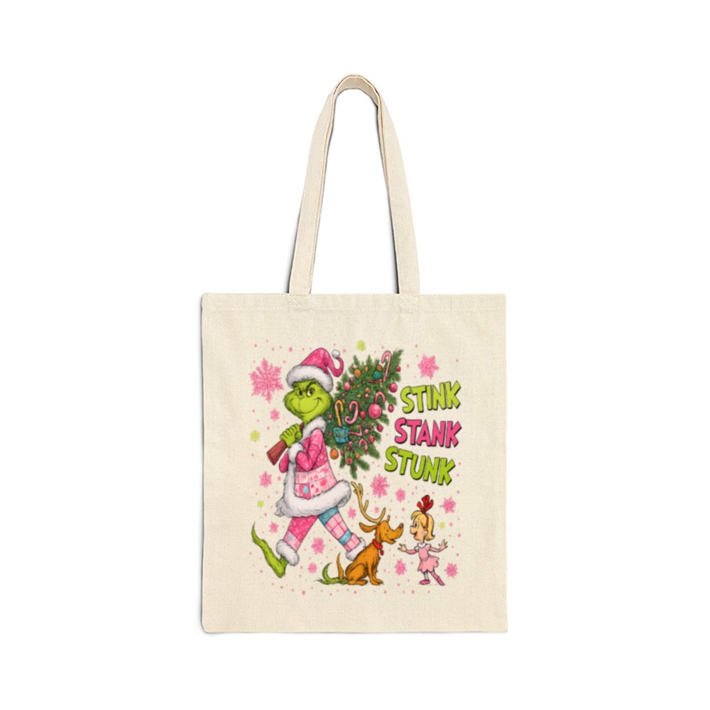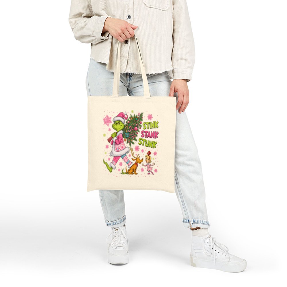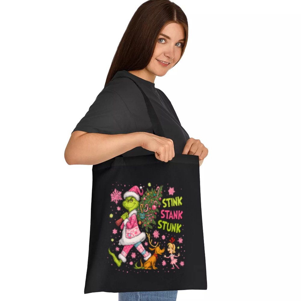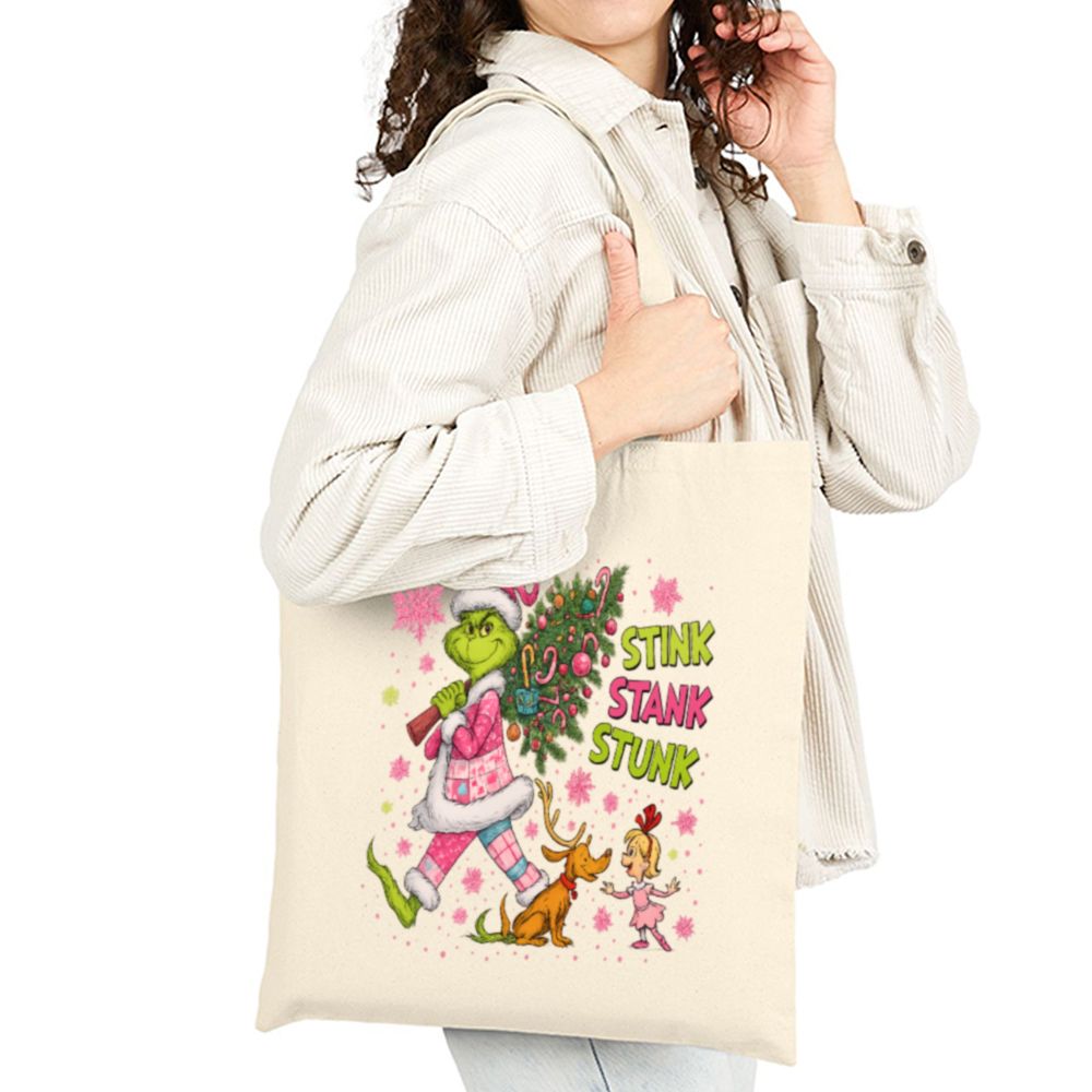 The Stink Stank Stunk Tote Bag delivers both function and festive snark. With its bright, cheeky design featuring a green Christmas grump, a decked-out tree, and sassy quote, this tote is the perfect match for sarcastic holiday shoppers and eco-conscious grinches alike.
