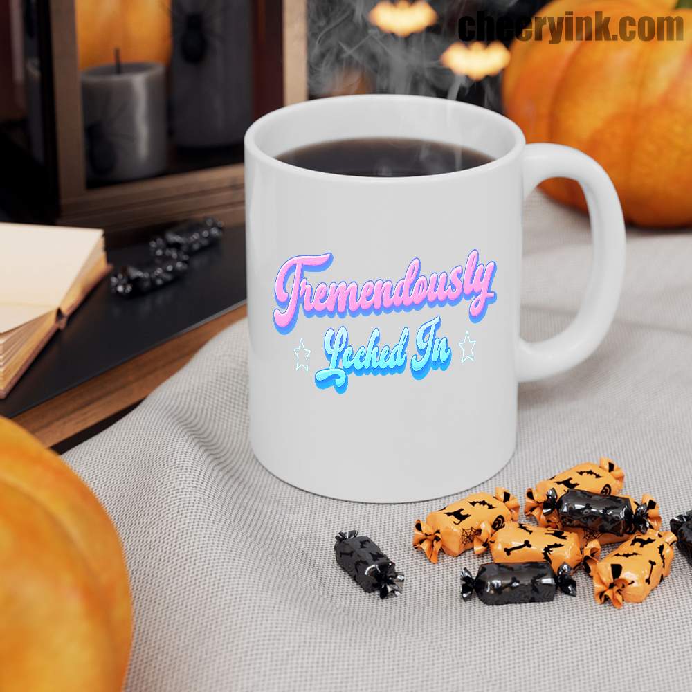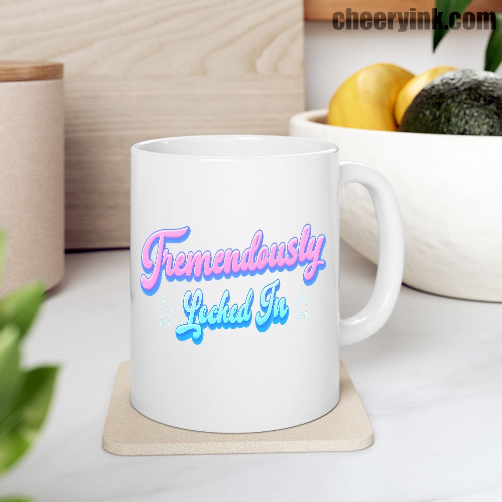 Fuel your focus with the Tremendously Locked In Mug. a pastel-perfect reminder that your mindset matters. Featuring dreamy typography in cotton-candy pink and blue with star details, this mug brings charm and intention to every sip.