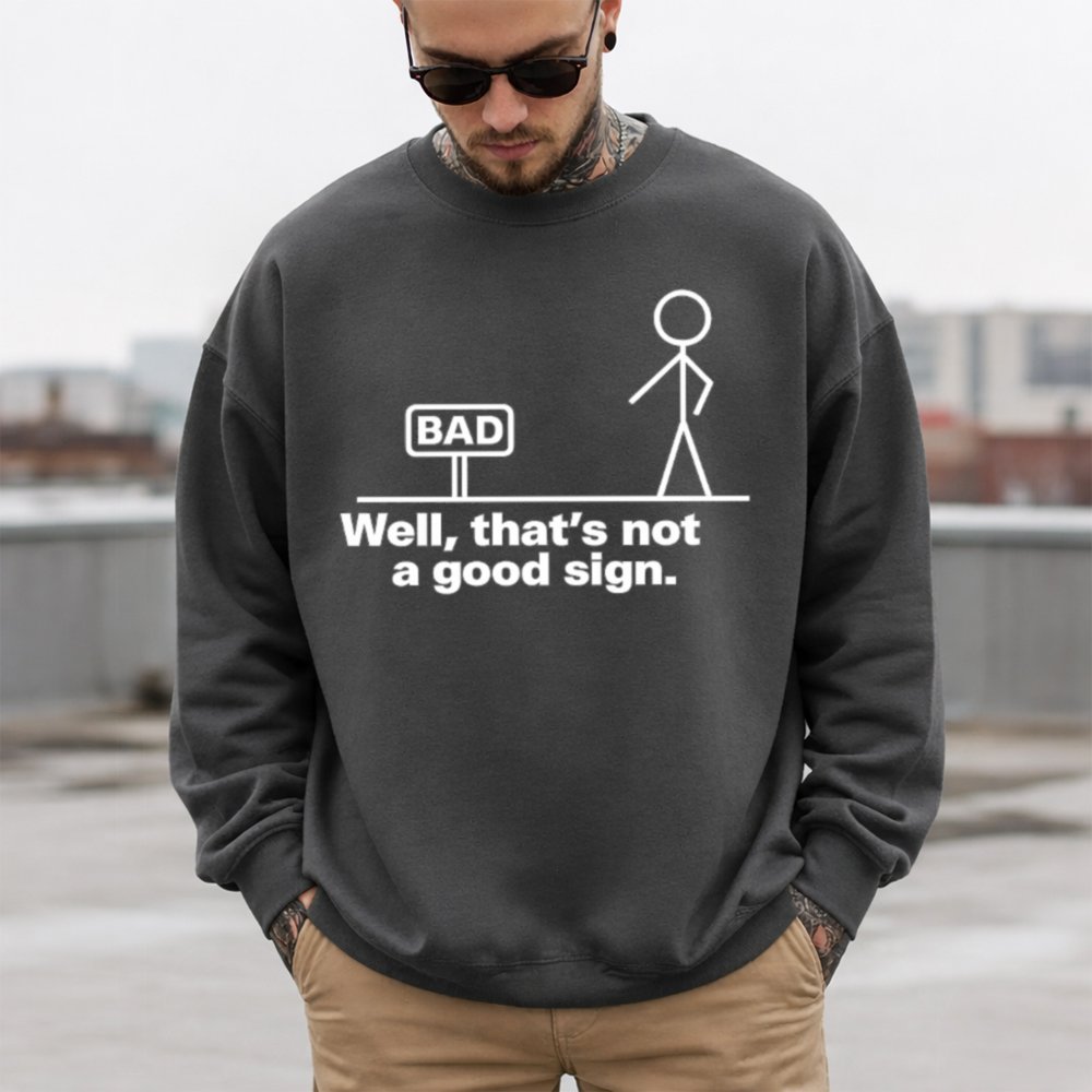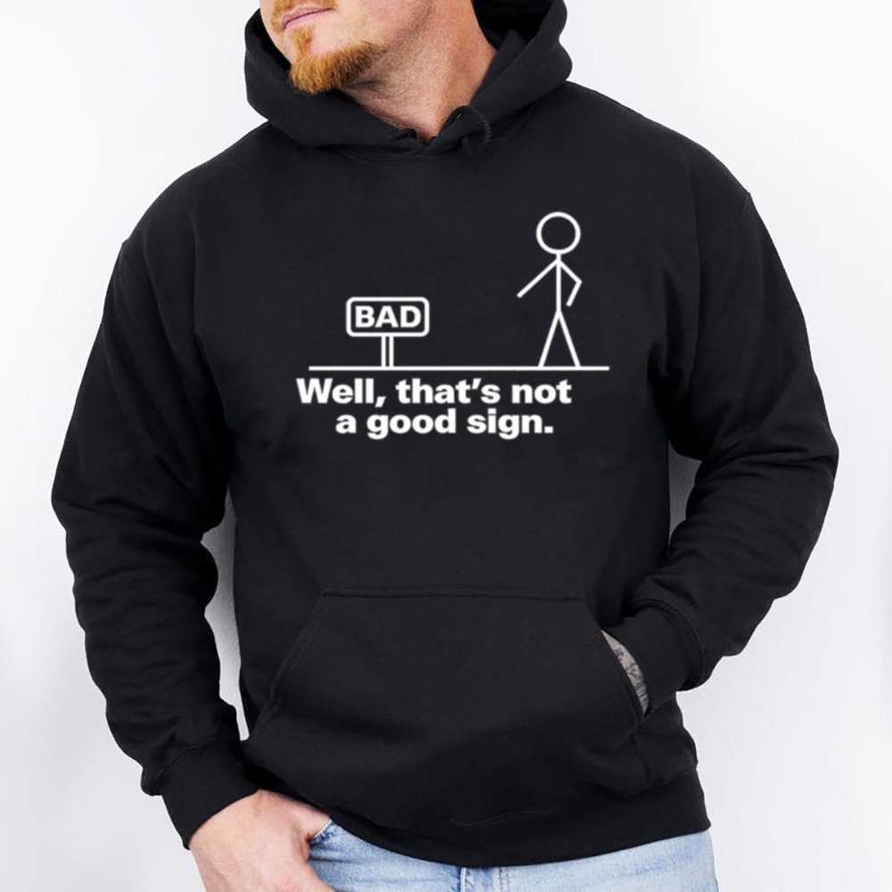 If sarcasm is your native language, the Well That’s Not a Good Sign Funny T-Shirt belongs in your closet. Featuring a clever visual pun—complete with a stick figure staring at a literal “BAD” sign this tee gets laughs without trying too hard.