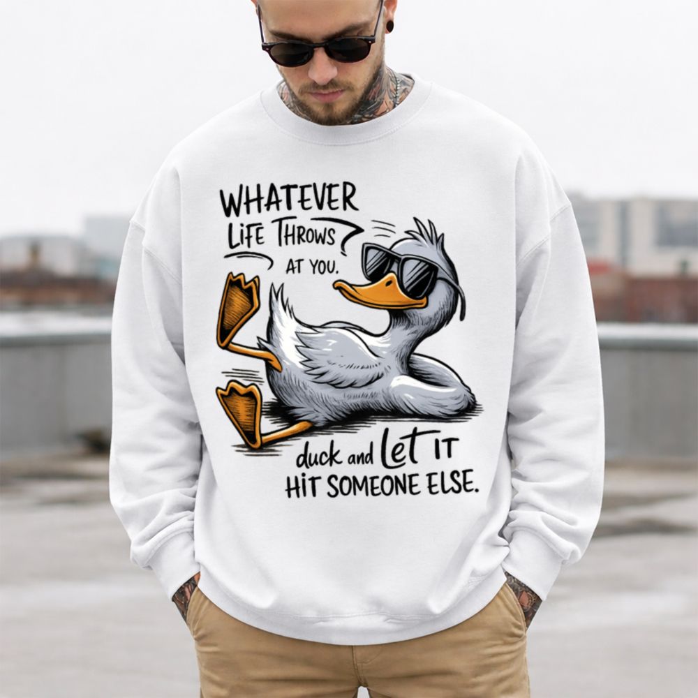 Whatever Life Throws At You Funny Sarcastic Duck 69 Sweatshirt Gildan 18000 White T Shirt