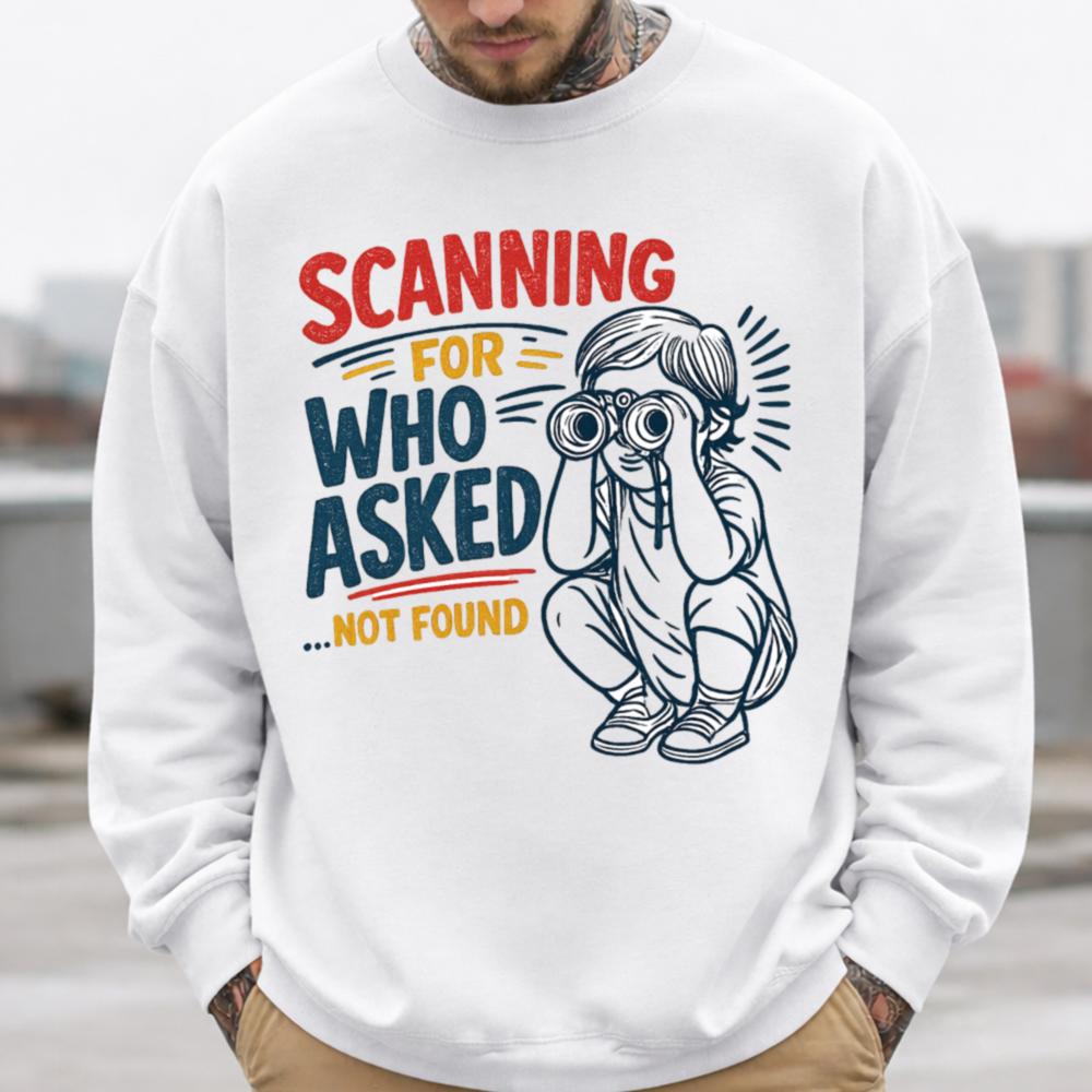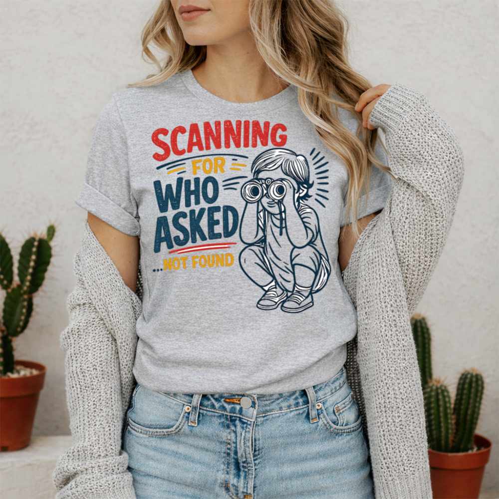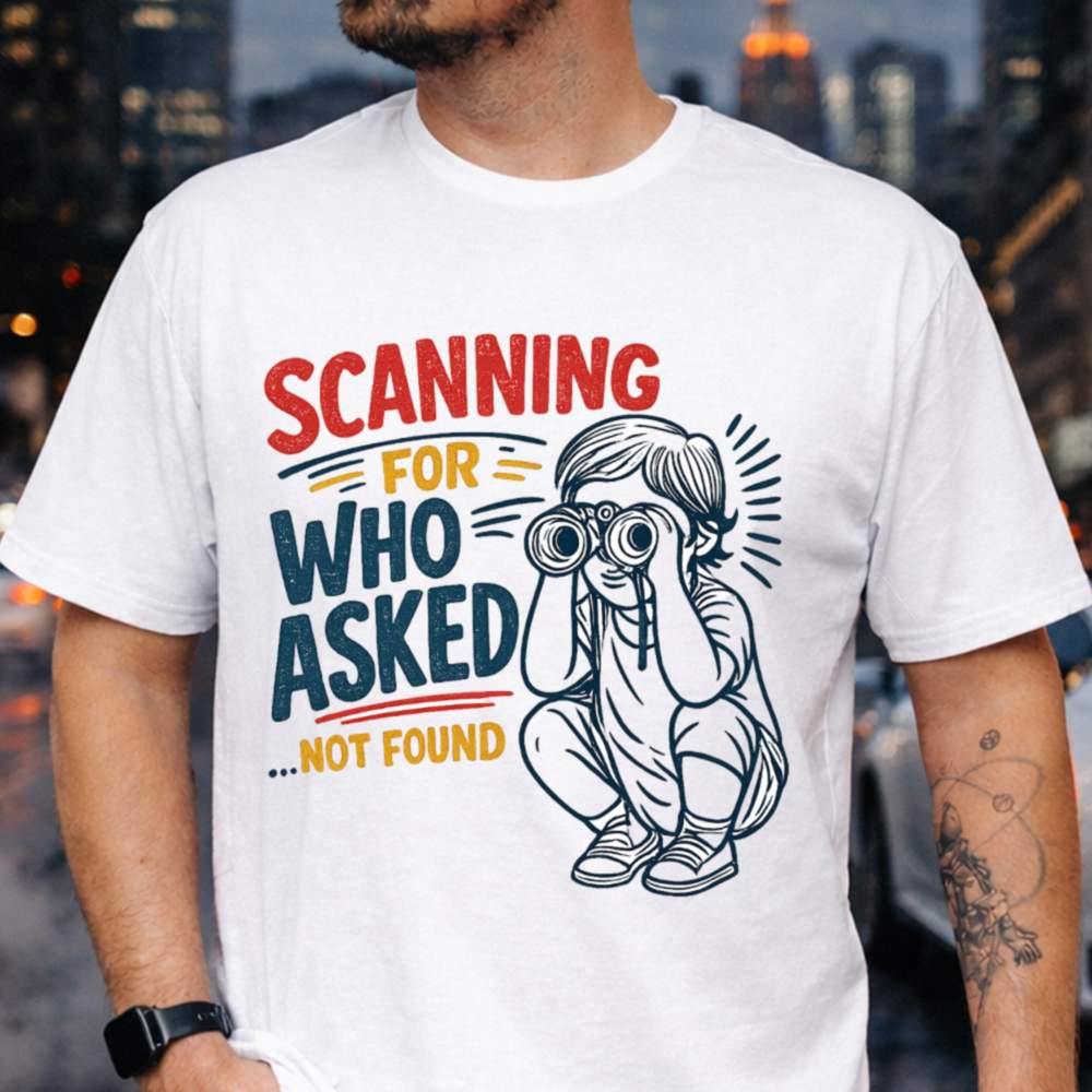 The Who Asked T-Shirt features a playful illustration of a child with binoculars, scanning for responses that never came. This design brilliantly encapsulates a sense of dark humor, perfect for those who love to poke fun at the absurdity of life. With its humorous tone, this shirt resonates with adults who appreciate wit and sarcasm in their wardrobe. Whether you’re attending a casual gathering, lounging at home, or out with friends, this T-Shirt makes a statement without saying a word. It’s perfect for anyone looking to express their unique personality and sense of humor in a stylish way.