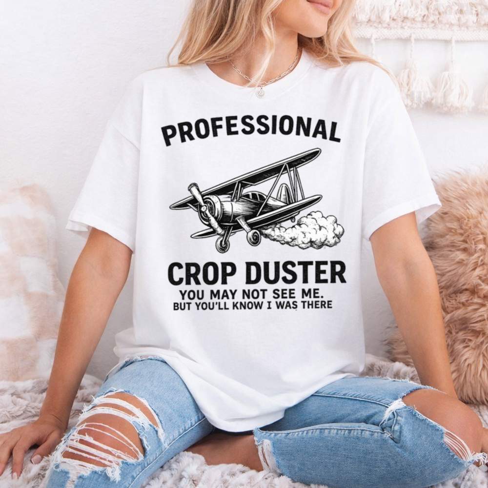 Get ready to clear a room with laughter add the You’ll Know I Was There Crop Duster T-Shirt to your collection now and take your jokes airborne.