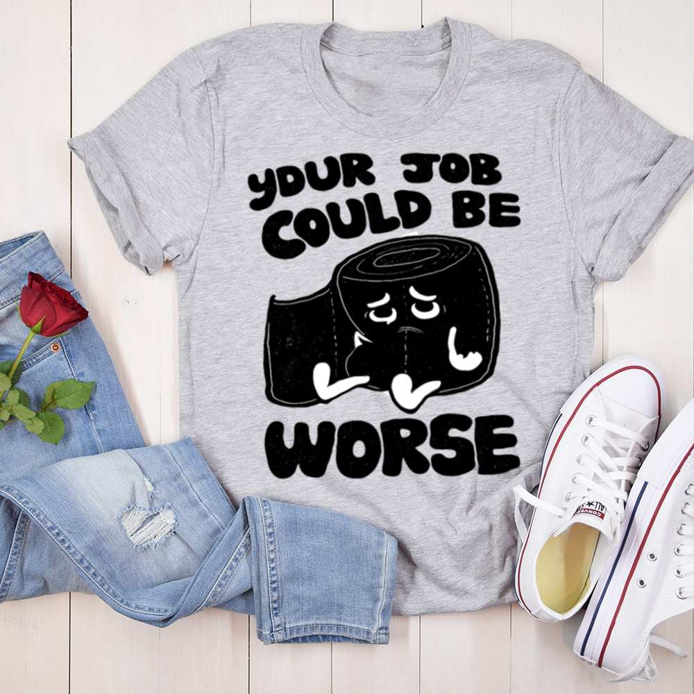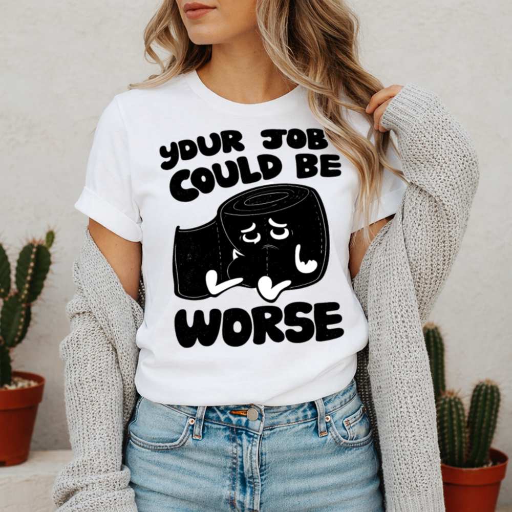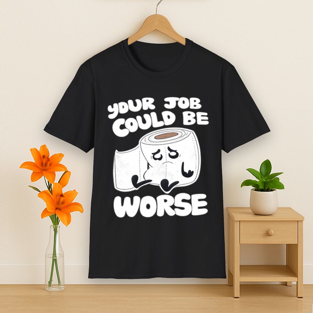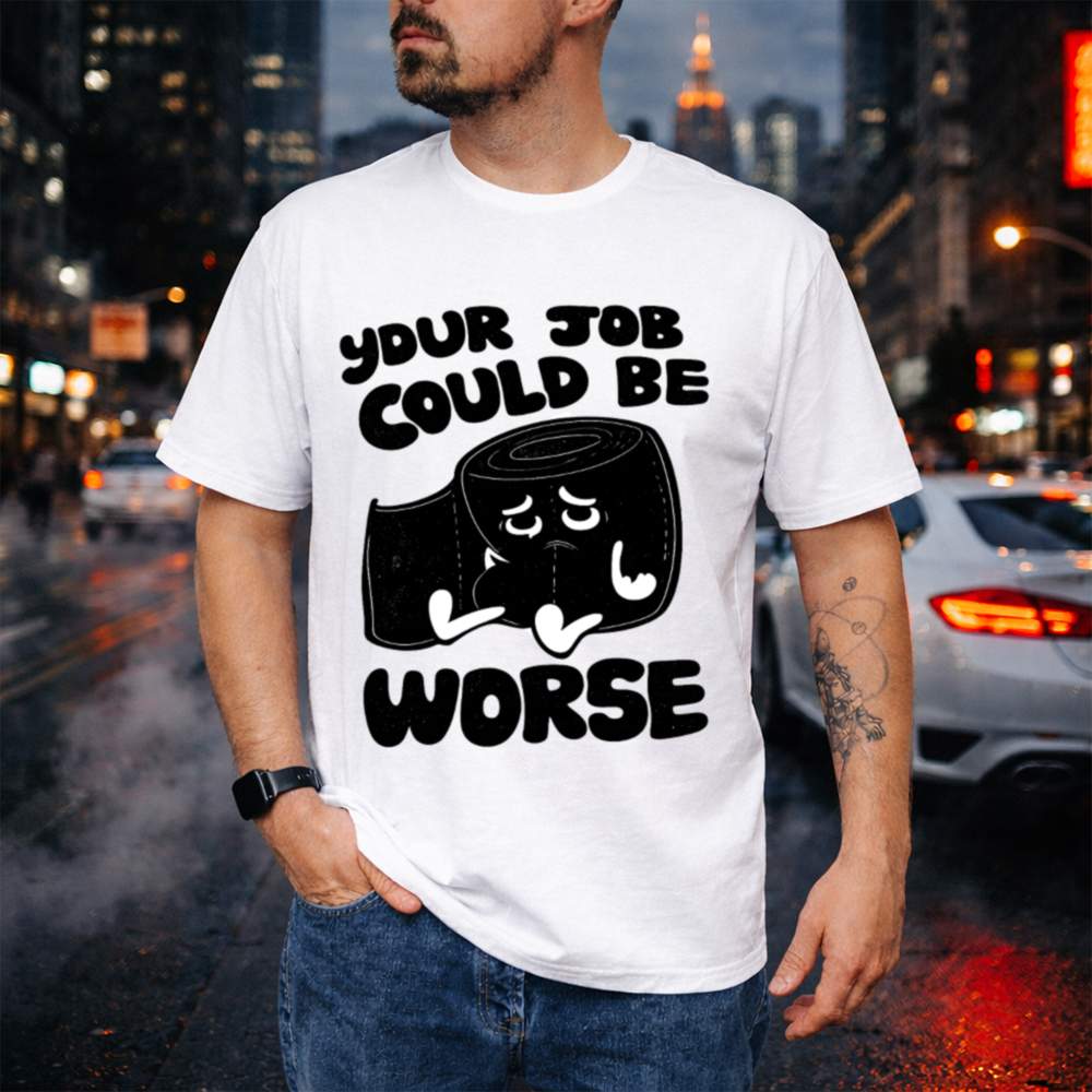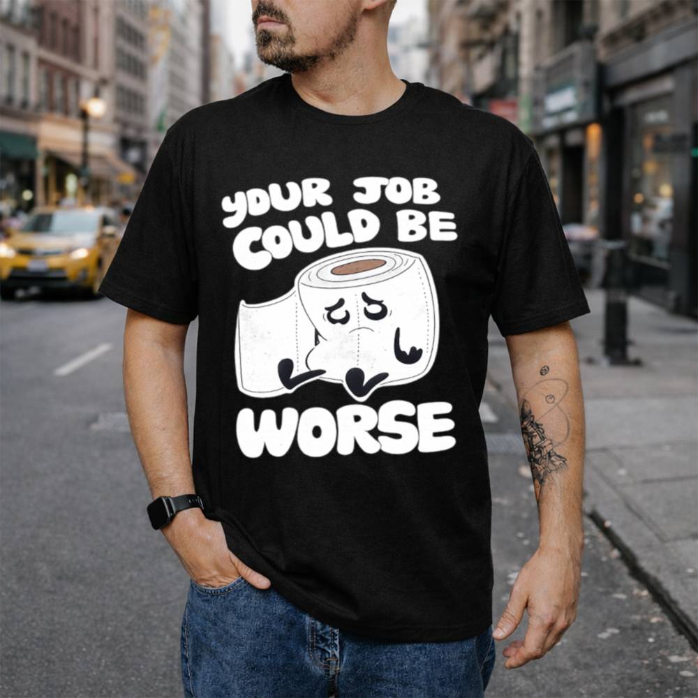 Survive the daily grind with humor on your side thanks to the Your Job Could Be Worse Funny T-Shirt. This hilarious design features a depressed cartoon toilet paper roll paired with a punchline that hits home for every overworked soul. A true gem in the funny inappropriate shirts niche, it turns everyday frustration into comedy gold.